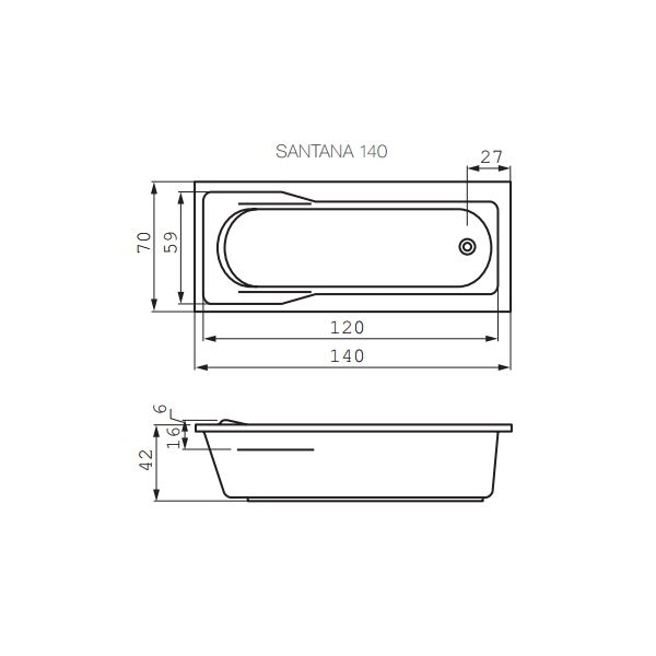 Акриловая ванна Cersanit SANTANA 140х70