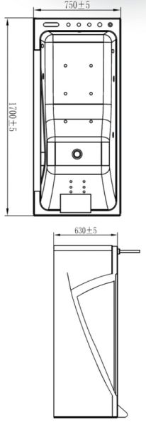 Функции гидро- и аэромассажа: 4 больших и 5 малых форсунок для гидромассажа; 6 форсунок для аэромассажа;