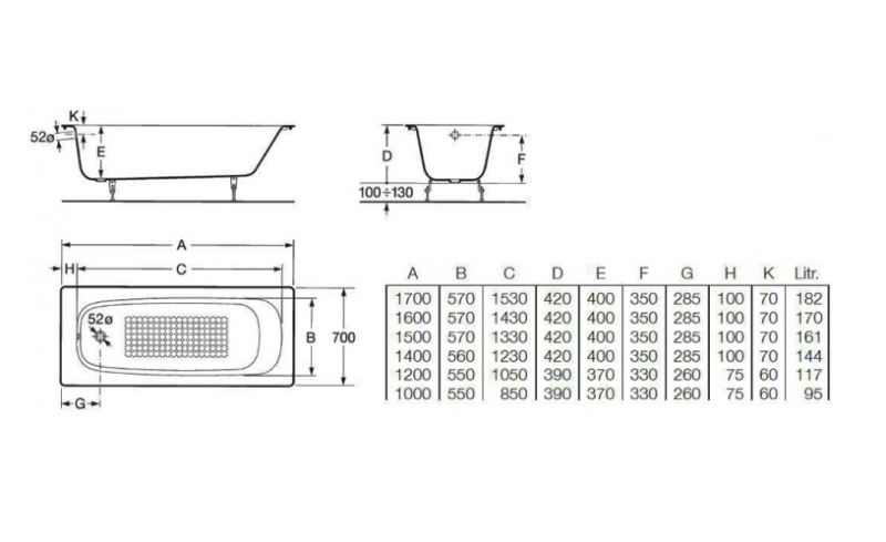 Чугунная ванна Roca Continental 170x70 21291100R