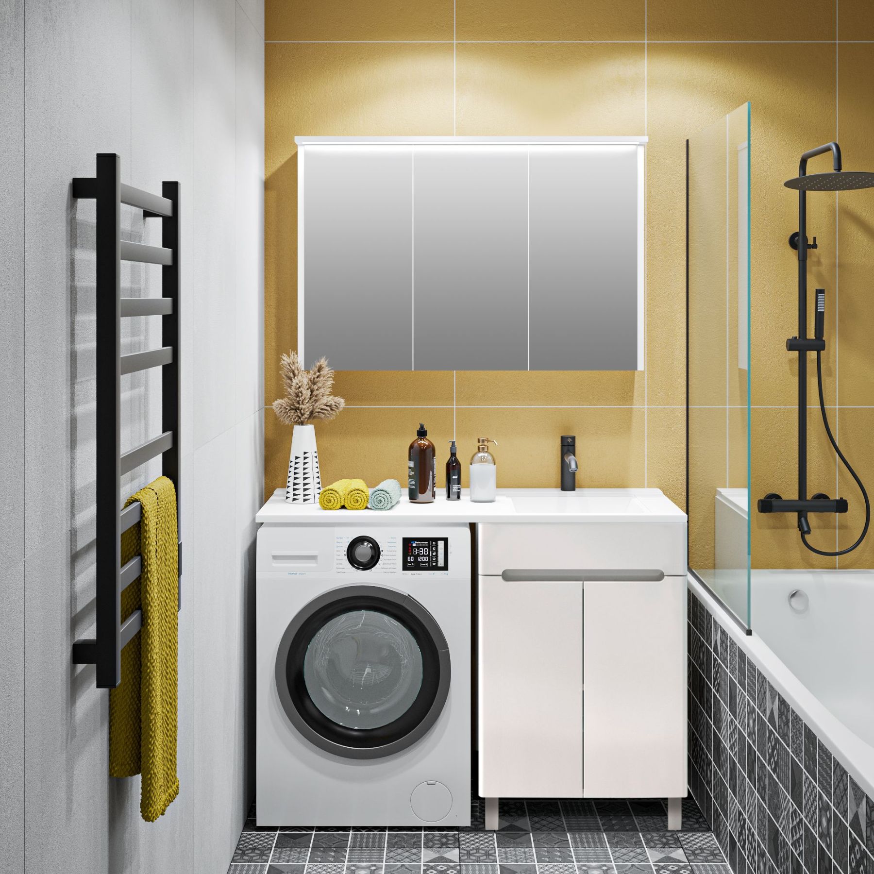 • Возможность установки над стиральной машиной: