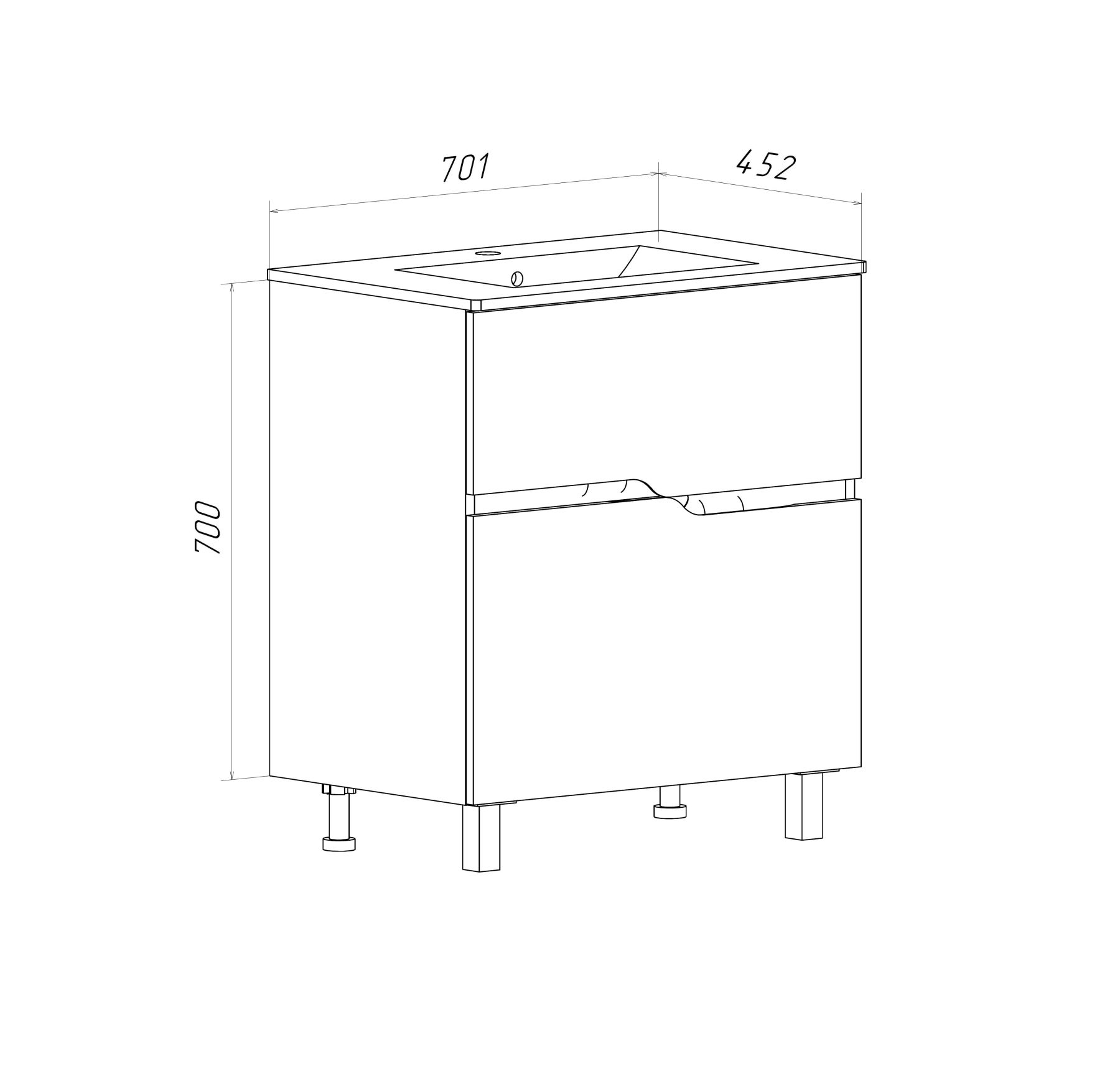 Тумба Runo Палермо 70 напольная под умывальник Teffy 70 (00-00004157)