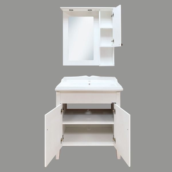 Название: Зеркало шкаф Артикул: Палермо 80 Варианты цвета: Белый Материал: МДФ Габариты (ШхВхГ): 790*860*150 мм Зеркальное высококачественное полотно с амальгамой на основе серебра. Мебельный элемент и рама окрашены белой глянцевой эмалью.