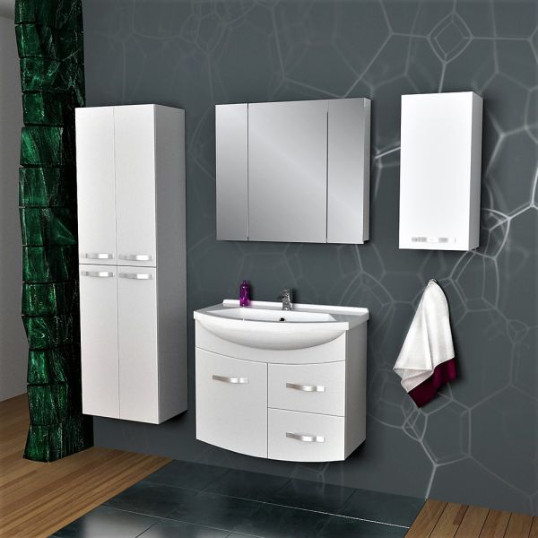 Полупенал для коллекций Alfa, Almi. Фасад белый лак МДФ. Стеклянные полки. Подвесной.