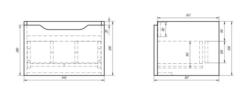 Подвесная коллекция Tiny с выдвижным ящиком шириной 50 см для маленьких пространств. под легендарный умывальник Mini Строгий минимализм, лаконичный дизайн, глянцевая поверхность фасада, идеальное качество покраски. В комплекты можно докупить зеркальные шкафы, пенал, полупенал.