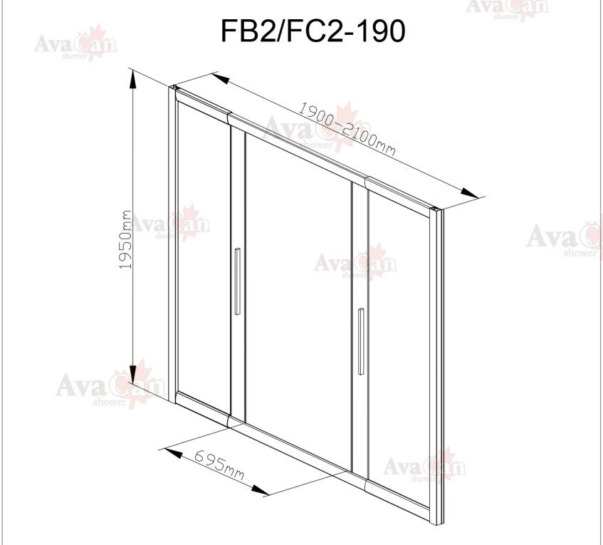 Душевая дверь в нишу AvaCan FB2 190-210 чёрный