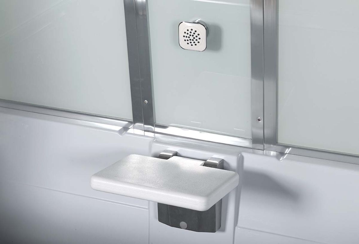Стильная душевая кабина с внутренней сборкой AvaCan V160 сочетает в себе высокую функциональность, практичность и надежность. Для изготовления применяют безопасное закаленное стекло толщиной 5 мм, надежно фиксируемое алюминиевым профилем. Цвет профиля хром. В комплекте зеркало, сенсорный пульт управления, передний съемный экран, донный клапан (клик-клак), душевой гарнитур, тропический (верхний) душ, откидное сиденье, гидромассажные форсунки, смеситель, переключатель режимов, вентиляция, радио.