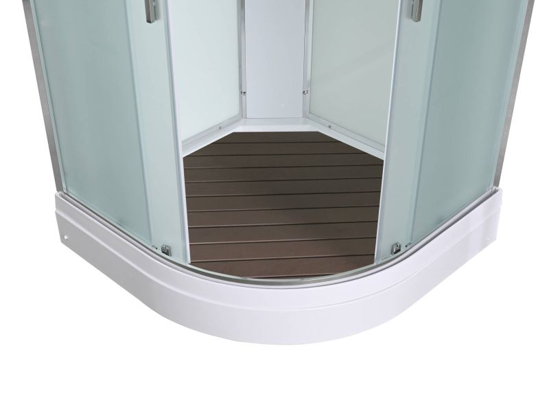 Стильная душевая кабина AvaCan EM2090 сочетает в себе высокую функциональность, практичность и надежность. При изготовлении применяется безопасное закаленное стекло толщиной 5 мм (матовое), надежно фиксируемое алюминиевым профилем. Сборка без силикона (увеличивает срок службы), внутренняя сборка(облегчает установку и ревизию; позволяет установить в ограниченном пространстве), смеситель резьбовой (без хомутов). Съемный экран поддона (позволяет осуществлять ревизию сифона). Цвет профиля  хром. Двойные металлические ролики дверей (увеличивают срок службы).В комплекте : душевая штанга, две полочки , тропический (верхний) душ, арома-лейка с витамином С (картридж съемный),полимерная вставка в поддон(имитация дерева),сифон, ручки дверей из нержавейки , двойные ролики .