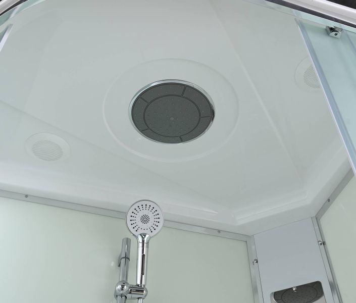 Стильная душевая кабина AvaCan EM2811R сочетает в себе высокую функциональность, практичность и надежность. При изготовлении применяется безопасное закаленное стекло толщиной 5 мм (матовое), надежно фиксируемое алюминиевым профилем. Сборка без силикона (увеличивает срок службы), внутренняя сборка(облегчает установку и ревизию; позволяет установить в ограниченном пространстве), смеситель резьбовой (без хомутов). Съемный экран поддона (позволяет осуществлять ревизию сифона). Цвет профиля  хром. Двойные металлические ролики дверей (увеличивают срок службы).В комплекте : душевая штанга, две полочки , тропический (верхний) душ, арома-лейка с витамином С (картридж съемный),полимерная вставка в поддон(имитация дерева),сифон, ручки дверей из нержавейки , двойные ролики .