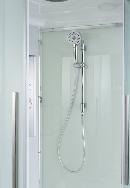 Стильная душевая кабина AvaCan сочетает в себе высокую функциональность, практичность и надежность. При изготовлении применяется безопасное закаленное стекло, надежно фиксируемое алюминиевым профилем. Профиль сделан из алюминия повышенной прочности. Сборка без силикона (увеличивает срок службы, защищает от протечек), внутренняя сборка (облегчает установку и ревизию; позволяет установить в ограниченном пространстве и обойтись без демонтажа других сантехнических приборов), смеситель резьбовой (без хомутов). Съемный экран поддона (позволяет осуществлять подключение и ревизию сифона).Двойные металлические ролики дверей (распределение нагрузки на два ролика, увеличивают срок службы). Душевая штанга(позволяет регулировать по высоте ручную лейку), ручная арома-лейка с витамином С (картридж в комплекте,есть возможность замены или удаления картриджа), полочки(из стекла, с ограничителем), сифон с гидрозатвором.