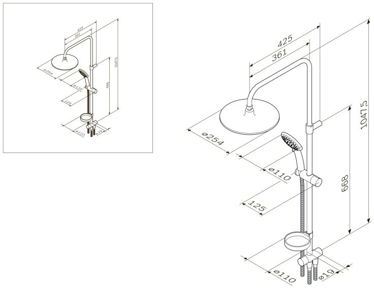 - Размер верхнего душа, см:25.4