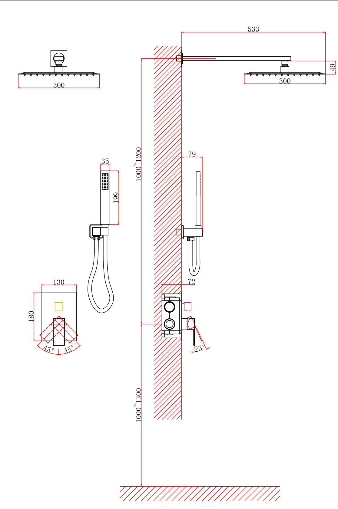 • Размер ручного душа, см: