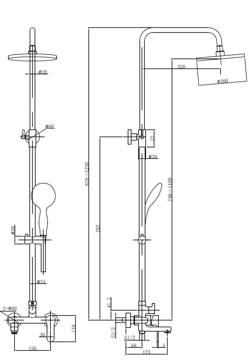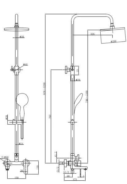 • Размер верхнего душа, см:
