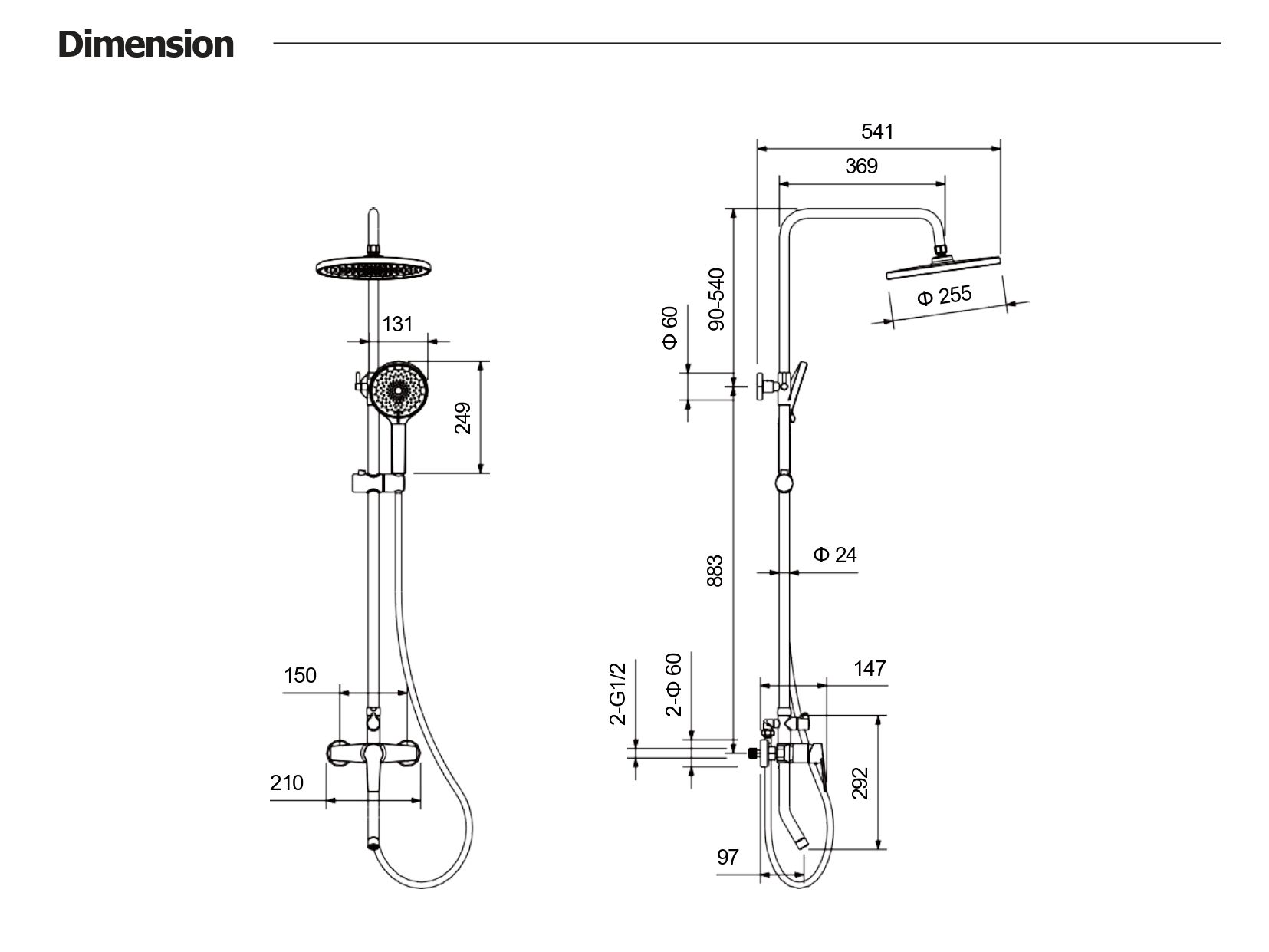 - Размер верхнего душа, см:25.5
