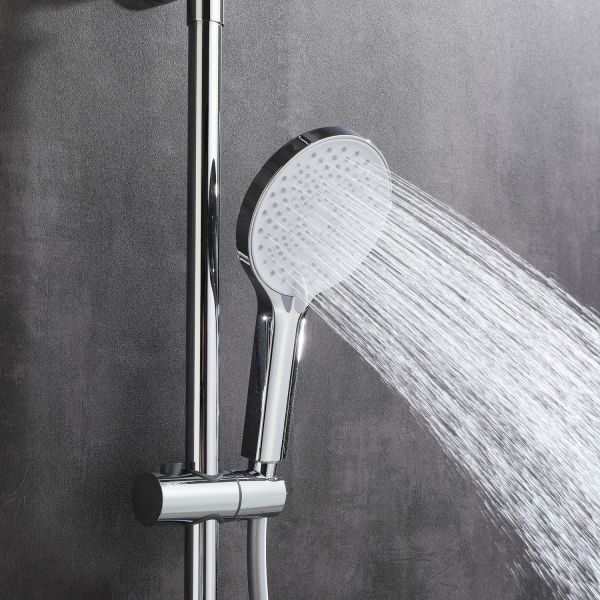 Душевая стойка в цвете глянцевый хром датского производителя Black&White. Корпус изделия произведен из сантехнической латуни – безопасного и коррозиестойкого сплава.Управление потоками и температурой воды выполняет керамический картридж повышенной пропускной способности.  Из потребителей на комплекте установлен верхний душ, ручной душ, а также на верхней части корпуса под углом расположен каскадный излив для набора емкостей. Для выбора режима работы  у основания стойки расположен поворотный дивертор выполненный в виде кольца с дополнительным выступом для удобства использования мокрыми руками.