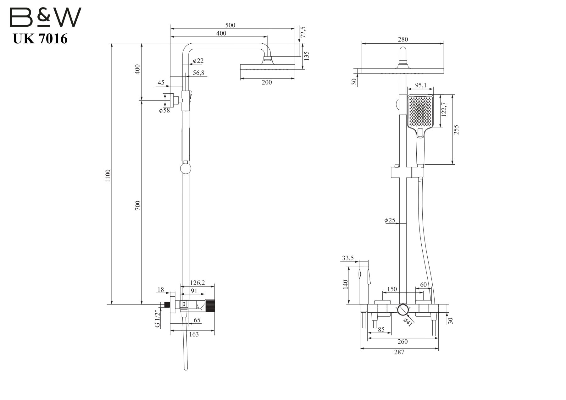 Душевая стойка Black&White Universe 7016B чёрный матовый