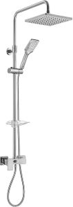 Душевая стойка E.C.A используется в ванных комнатах. Модель оснащена квадратным верхним душем и прямоугольной лейкой. Модель оснащена ограничителем температуры и керамическим картриджем, обеспечивающим контроль и точность при выборе напора и температуры воды. Дополнительные характеристики: