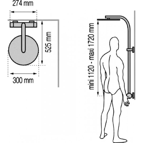 Ультра тонкий дизайн. -Эксклюзивный, экстра-плоский верхний тропический душ D300 mm. Ручной Душ: -Душ D 95 mm ABS с 3-х позиционной массажной лейкой система Декальцинации (легкая очистка известковых отложений) -Экономичный расход воды -Хромированные корпус и резьба -Гибкий силиконовый шланг 1.75 м. Штанга: -Душевая штанга из нержавеющей стали с закрепляющимися двухсторонними мыльницами (дополнительная опция) -Регулировка по высоте min 1120 max 1720 mm. -Пристенный вариант установки.