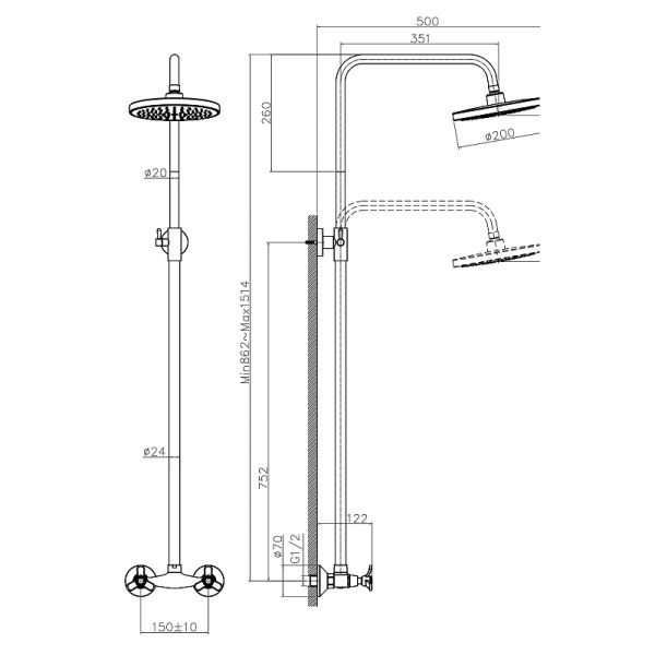 - Размер верхнего душа, см:20