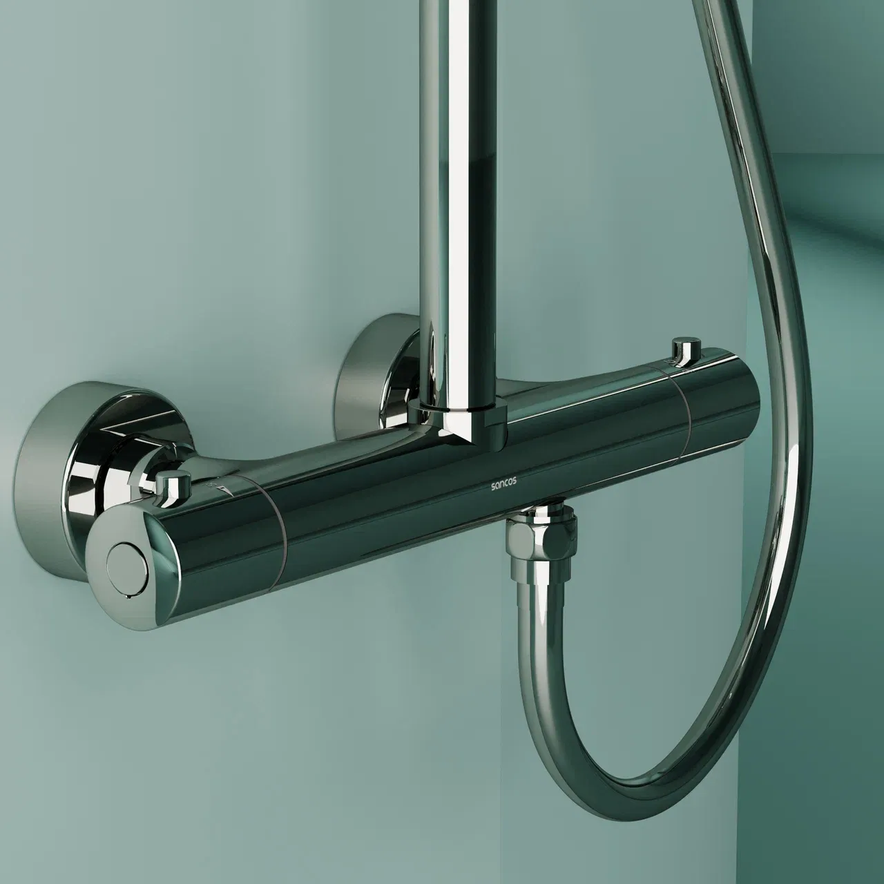 Душевая стойка SANCOS Game для душа с термостатическим смесителем, верхним, ручным душем и шлангом в комплекте, цвет хром, арт. SC3002CH
