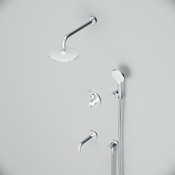 Набор встроенного оборудования X-Joy - идеальное решение для вашей ванной комнаты. Встроенный механизм освобождает ванную комнату от лишних деталей превращая пространство в идеальное место для себя. Набор включает в себя: верхний тропический душ 22 см, ручной душ, держатель ручного душа и смеситель.