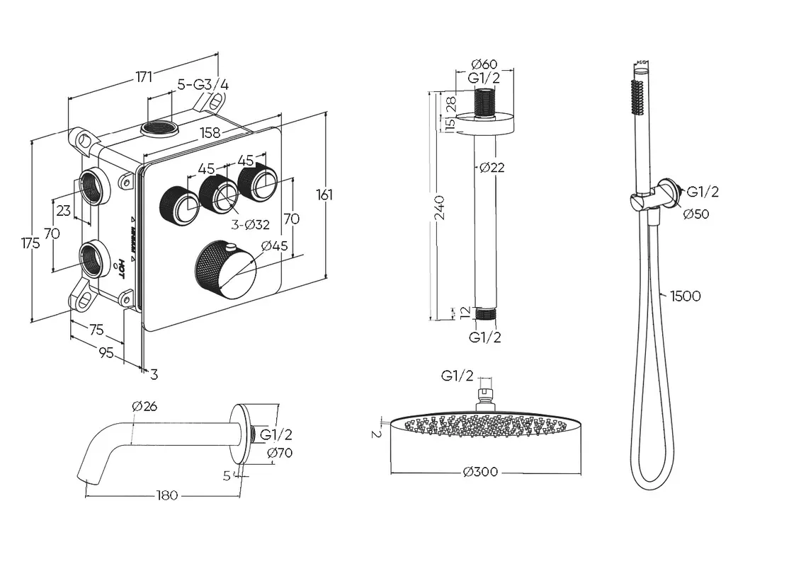 Душевой комплект Milleau Tissage TERMO 3SBIT/802Q-CR хром Подробнее