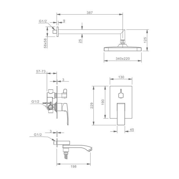 Душевая система встраиваемая Raglo R01.27.09, графит. Материал: латунь. Управление: однорычажное... Подробнее