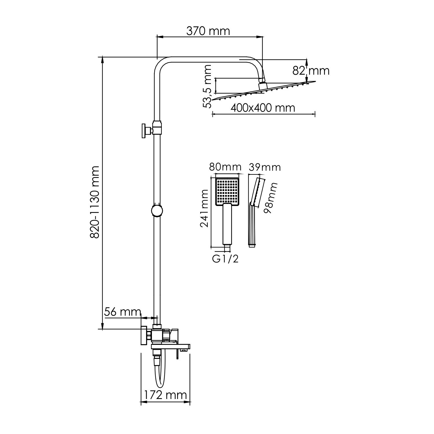 Стойка для душа, Ø 22 мм регулируемая по высоте