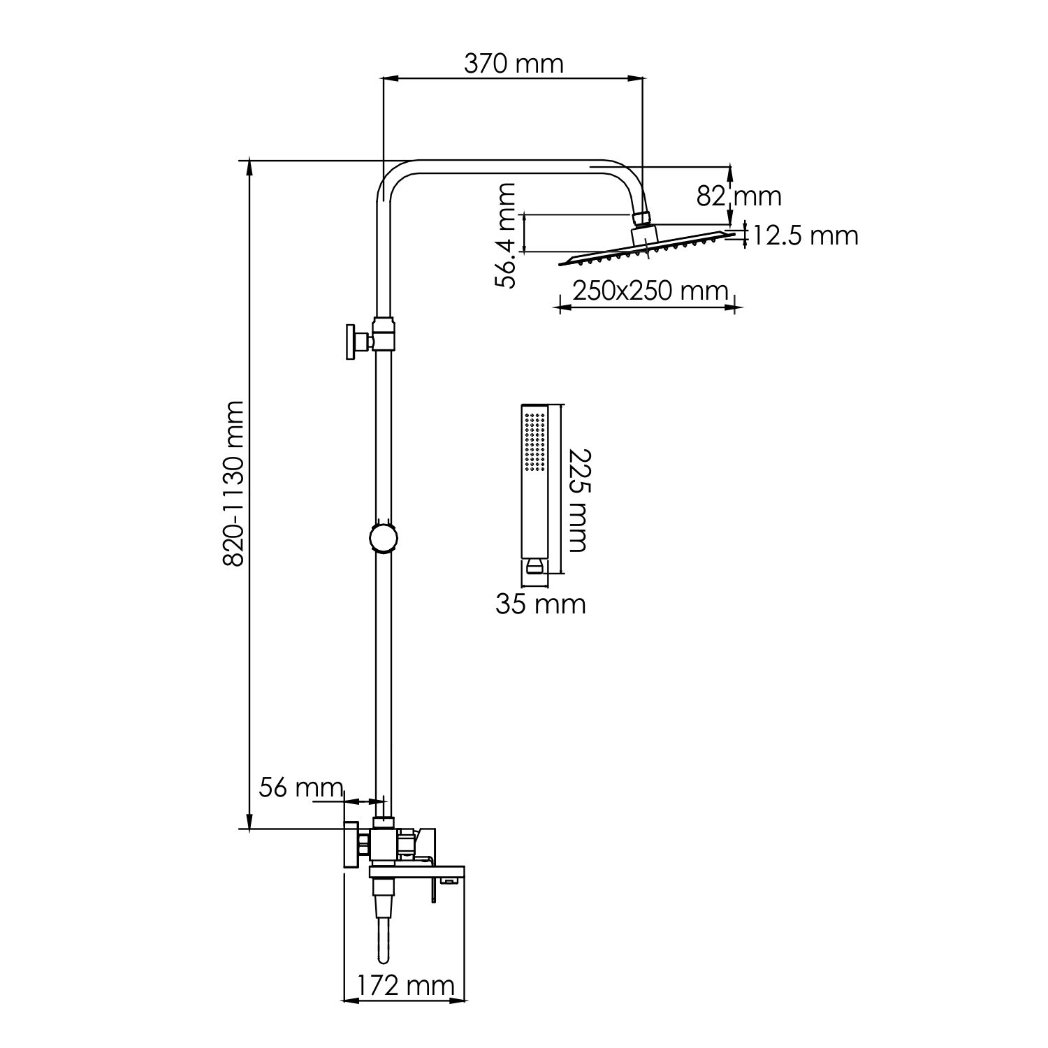 Стойка для душа, Ø 22 мм регулируемая по высоте