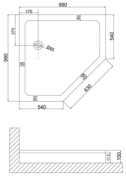 Душевой поддон NG-100-100D (100*100*15) трапеция, низкий Экран съемный.Сифон с системой clik-clack и гидрозатвором в комплекте