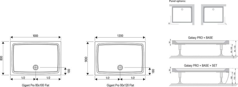 Поддон Gigant Pro Flat подходит для душевых уголков SRV2-S+SRV2-S, ASDP3(+APSS), SDZ3(+PSS), SDOP(+PSS), BLRV2K+BLRV2K, BLDP2(+BLPS), BLDP4(+BLPS), PDOP2(+PPS), CRV1+CRV1, CRV2+CRV2, CRV2+CPS, SMSD2(+SMPS), BSDPS, 10RV2K+10RV2K, 10DP2(+10PS), NRDP2+RPS, NRDPR4 + RPS и ванных комнат с душевыми дверьми ASDP3, SDZ3, SDOP, CSD1, CSD2, CSDL2, BSD2, BSD3, 10DP4, NRDP2, NRDP4.