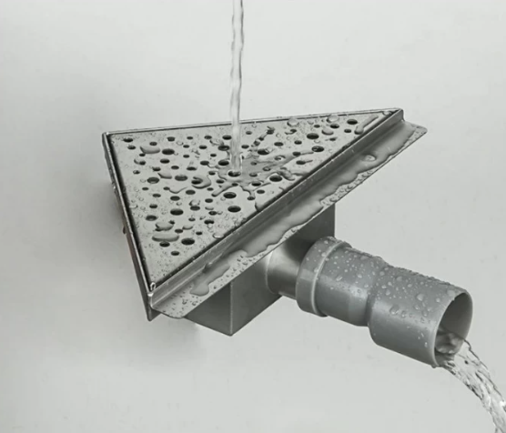 Угловой трап для душа с боковым выпуском Gappo G82020-1, размер 20 * 20 см, цвет сатин, изготовлен трап из нержавеющей стали. Боковой выпуск 40 мм, в комплекте переходник на 50 мм. Защита от запаха: комбинированный гидрозатвор, защита от проникновения запаха и жидкости из канализации.
