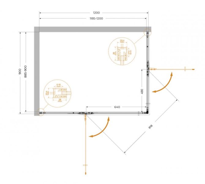 Душевой уголок CEZARES LINER-AH-2-120/90-C-Cr-L левый