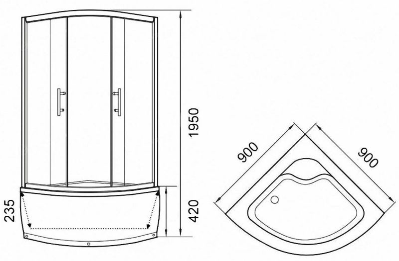 • Высокий поддон 42 см. Рельефное дно предупреждает падения.