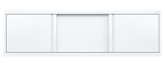 По всему периметру экрана расположена усиленная рама, выполненная из алюминия. Конструкция имеет три подвижные раздвижные двери из МДФ, покрытых высокоглянцевой белой пленкой. На боковых дверцах расположены интегрированные ручки.