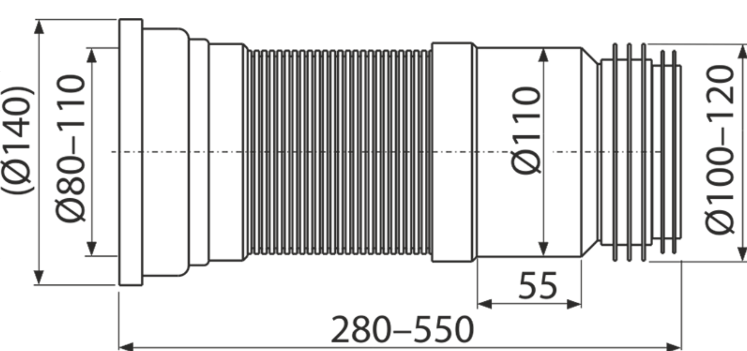 Гибкая подводка для выпуска унитаза AlcaPlast 28-55см A970