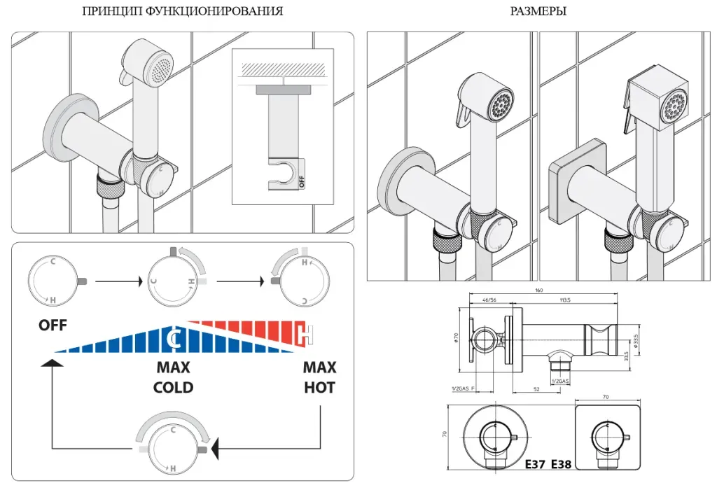Bossini Nikita Mixer Set гигиенический комплект: смеситель прогрессивный, душ с кнопкой подачи в... Подробнее