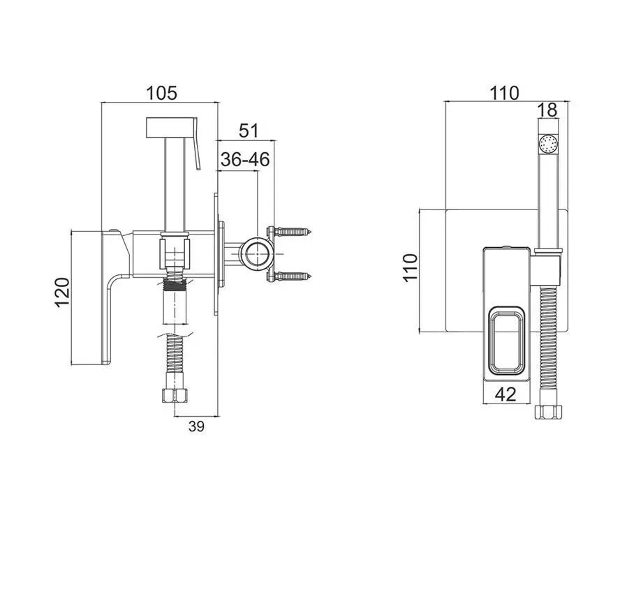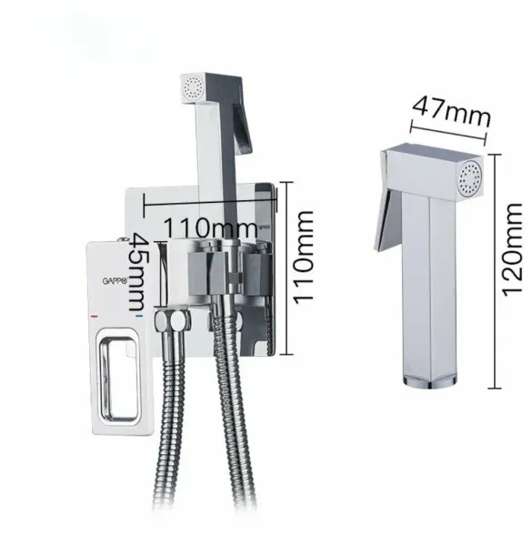 Смеситель встраиваемый Gappo G7218 с гигиеническим душем - однорычажная латунная модель с хромированным покрытием. Гигиеническая лейка с нажимным механизмом крепится на корпусе смесителя. Душевой шланг в комплекте.