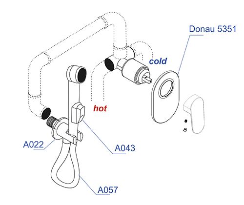 Гигиенический набор WasserKRAFT A11057 120 смХарактеристики:-Керамический картридж 40мм, Sedal (Испания)-Фиксированное настенное крепление для лейки-Комплект скрытого монтажа-Наружная часть смесителя-Силиконовые форсунки с системой защиты от известковых отложенийВходит в комплект:-Смеситель для душа Donau 5351-Подключение шланга A022-Шланг для душа 1200 мм А057-Гигиеническая лейка с фиксатором A043