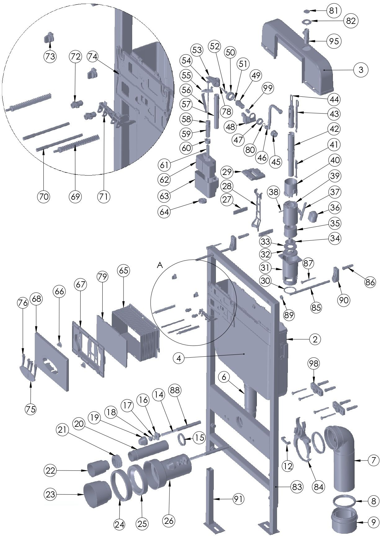 Инсталляция DQ - это система креплений и приспособлений, позволяющих произвести установку подвесного унитаза. Крепится она к стене или за специальным декоративным коробом. На раму устанавливается чаша подвесного унитаза, сливной бачок, различные приспособления и механизмы, вентили и краны, предохранительные клапаны. Также система инсталляции позволяет подключать трубы для подачи и отведения воды. Особенности системы инсталляции DQ: