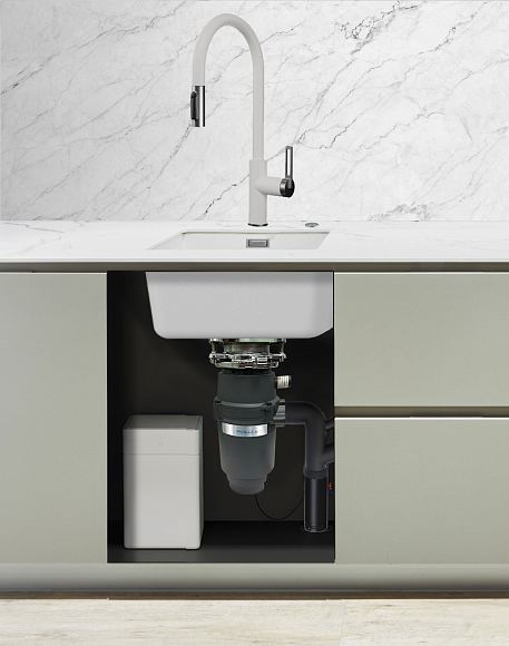 Дополнительные особенности, такие как антикоррозийное покрытие камеры дробления и система автоматического перезапуска, обеспечивают долговечность и безопасность эксплуатации. Модель подходит как для стальных, так и для кварцевых моек, что делает ее универсальным решением для кухни.