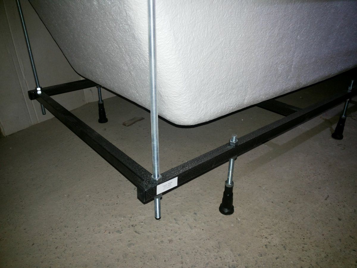 Усиленный цельносварной стальной каркас для прямоугольной ванны изготовлен из квадратного металлического профиля 2х2 см и окрашен темно-бронзовой молотковой краской. Каркас имеет 8 ножек и 4 опоры в борт ванны снизу. Предназначен для использования во влажных помещениях.