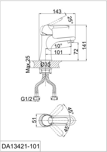 - Гибкая подводка 40 см идёт в комплекте для быстрой установки;