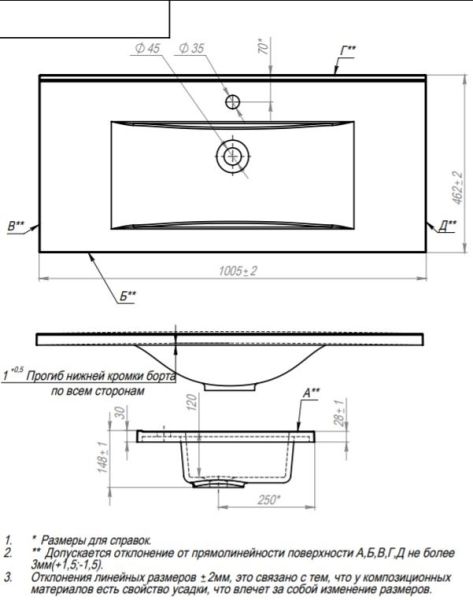 Мебельная раковина Andrea SV 100см белый 00000010946
