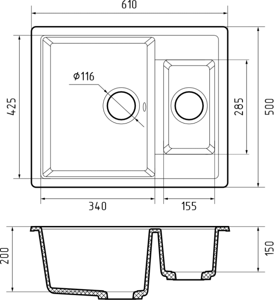 Общий размер: 610 * 500 мм