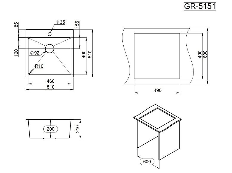 Мойка кухонная Granula 5151, СТАЛЬ САТИН