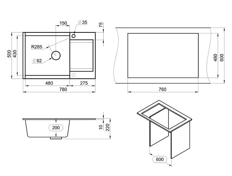Сифон с отводом для бытовой техники, разделочная доска (ясень)