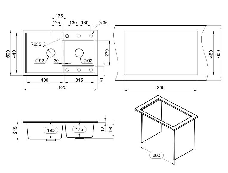 Мойка кухонная Granula 8201, ШВАРЦ