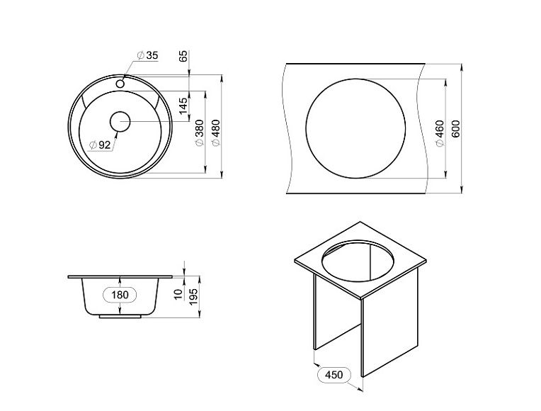 Мойка кухонная Granula Standart 4802, ЧЁРНЫЙ