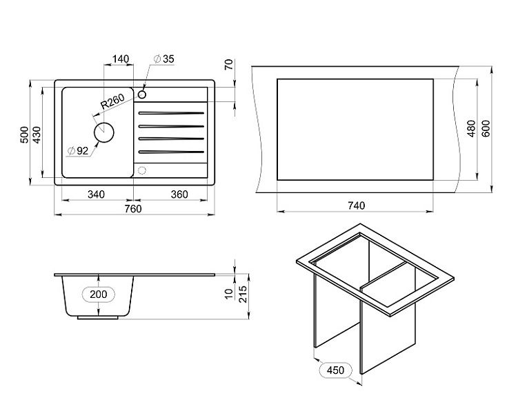 - Отверстия под смеситель:1