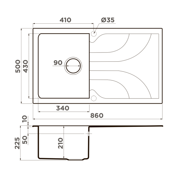 - Отверстия под смеситель:нет